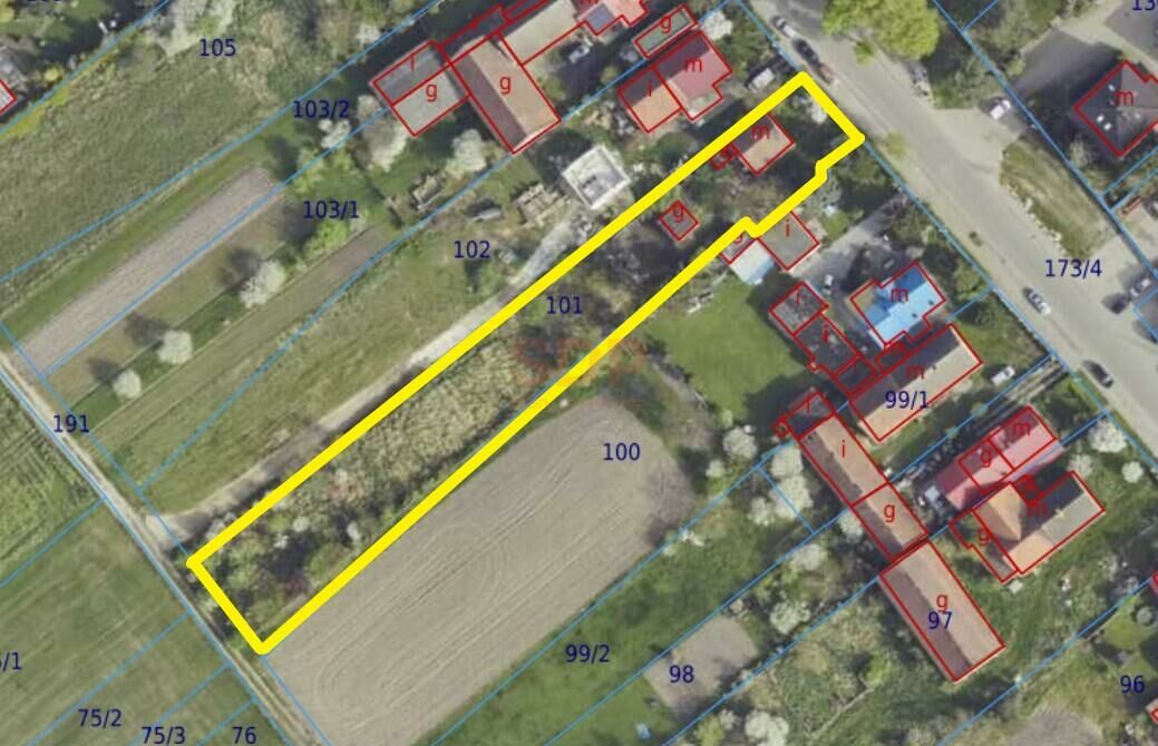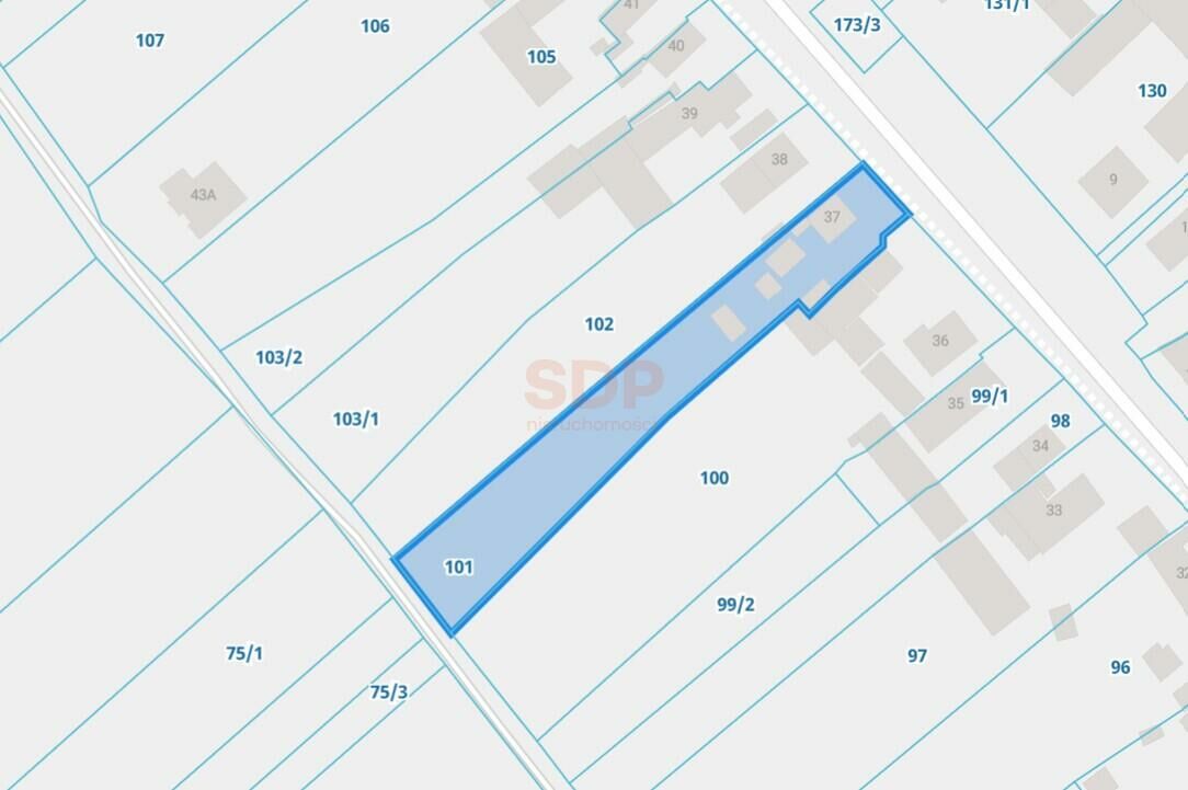 Nieruchomość obejmuje jedną działkę budowlaną z dwoma budynkami w bardzo niskim stanie technicznym (dom i budynek gospodarczy). Północna część działki, od strony mediów oraz asfaltowej drogi, gminnej o powierzchni ok. 900 m2 jest obszarem działki o przeznaczeniu mieszkaniowo-usługowym, a część południowa, od strony drogi utwardzonej gminnej, o powierzchni ok. 1300 m2 jest obszarem działki o przeznaczeniu mieszkaniowym. Całkowita długość działki to 137 m, a średnia szerokość to ok. 16,8 m.